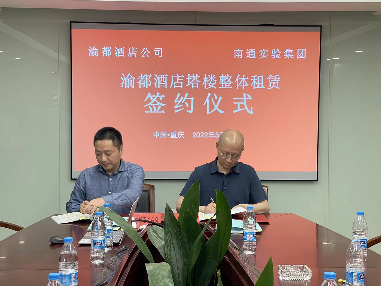 2022年5月20日,渝都酒店塔楼整体租赁签约仪式在重庆商社大厦9楼会议室隆重举行。受新冠疫情影响,签约仪式现场简约但不失庄重。B体育集团、南通实验集团、渝都酒店公司相关人员到场见证。
